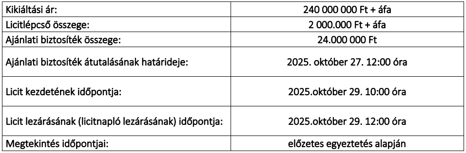 Kiíró a licitre kerülő ingatlan további adatai és az ingatlannal kapcsolatos további információk –elérhetők pvh.hu, és az ingatlan.com hivatkozási helyeken.
