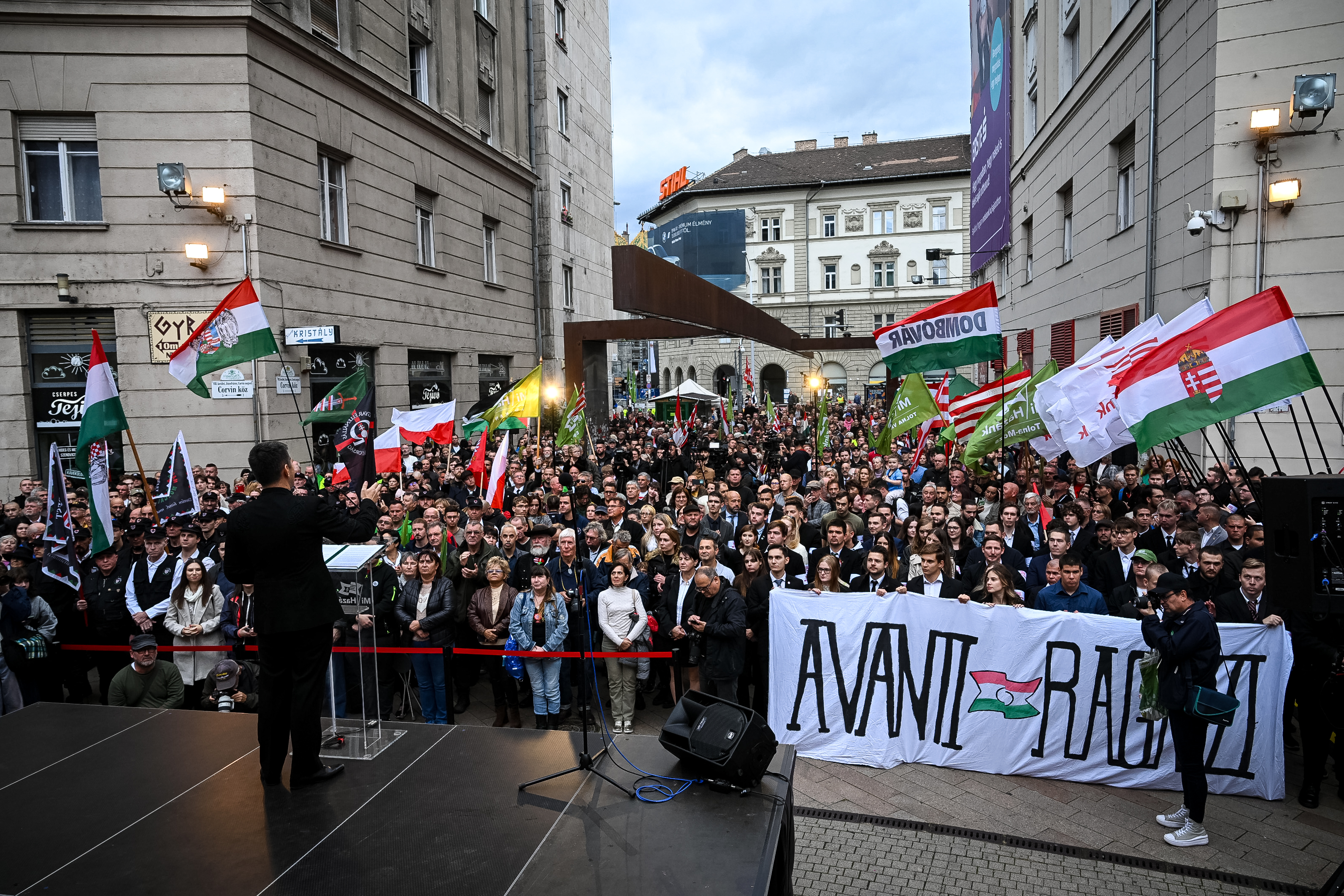 Toroczkai László pártelnök beszélt a végrehajtó-maffiáról, a Pfizer-gyógyszergyárról, az antifáról, az Ukrajnának fegyvereket gyártani kívánó zalaegerszegi Rheinmetal-érdekeltségű üzemről, amelyre Szijjártó Péter külgazdasági és külügyminiszter állami támogatást adott. Bírálta a Fideszt, de még hosszabban Magyar Pétert és pártját, a Tiszát.